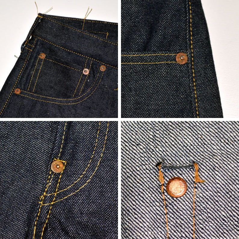 The fabric itself uses the dead stock blue, S1003XX fabric, which reproduces the dead stock denim of the "WW2" era as it is from the thread count.