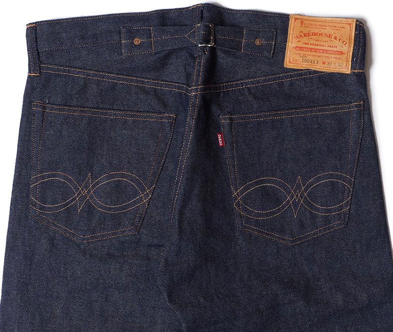 Original stitching slightly below the back pocket. The leather patch, which is also the face of warehouse jeans, uses the "vegetable tannin deer skin label" only for the DSB series.
