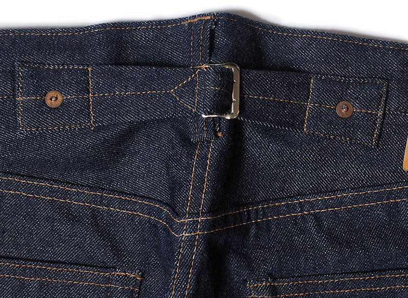 The suspender button has been abolished from the work pants called waist overalls, and although the buckle back remains, it is a modern style that is worn only with a belt. 1936 model with the suspender button removed and the buckle back left. It is a good part that is rugged even with this detail alone.