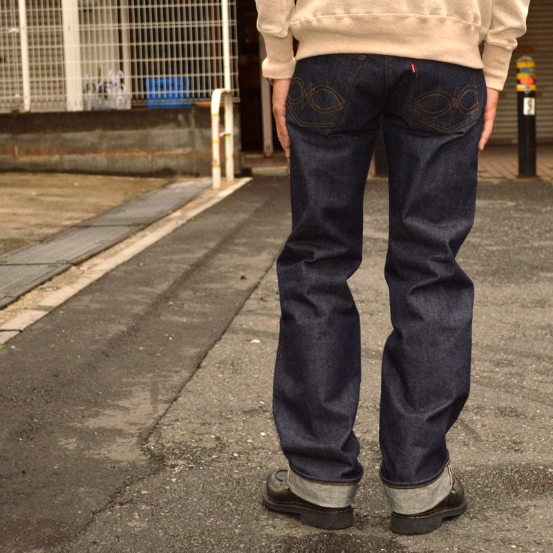 This time as well, we made a newly developed 7.5 x 7.5 red selvedge denim for these jeans, and the finish like a warehouse is alive and well.