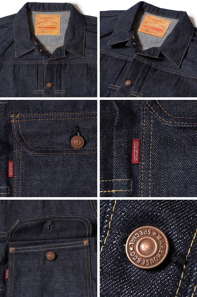[Dead Stock Blue  (WARE HOUSE)  "Lot.2001XX(2000XX)" "Late 1940's to 1950" Copper-colored steel buttons]